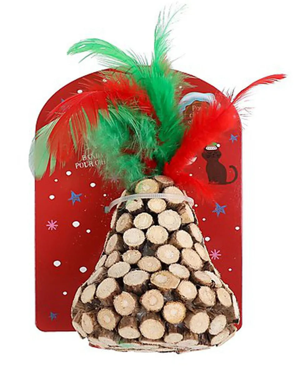 Jouet original pour chat en forme de cloche, formé avec de petits ronds de bois, avec une plume au bout qui excitera votre chat.