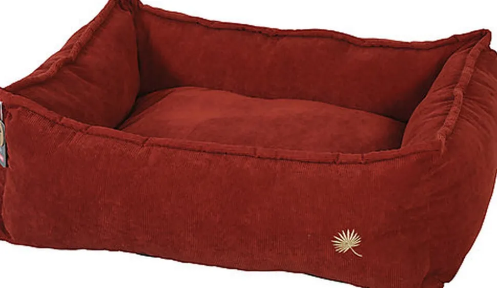 Nouvelle gamme de confort pour chien aux coloris et matières tendances. Vétûe de velours cotelé de couleur brique, cette corbeille dispose de finitions soignées tels que ses gros passe-poils et son empiècement brodé en forme de feuille de couleur doré.