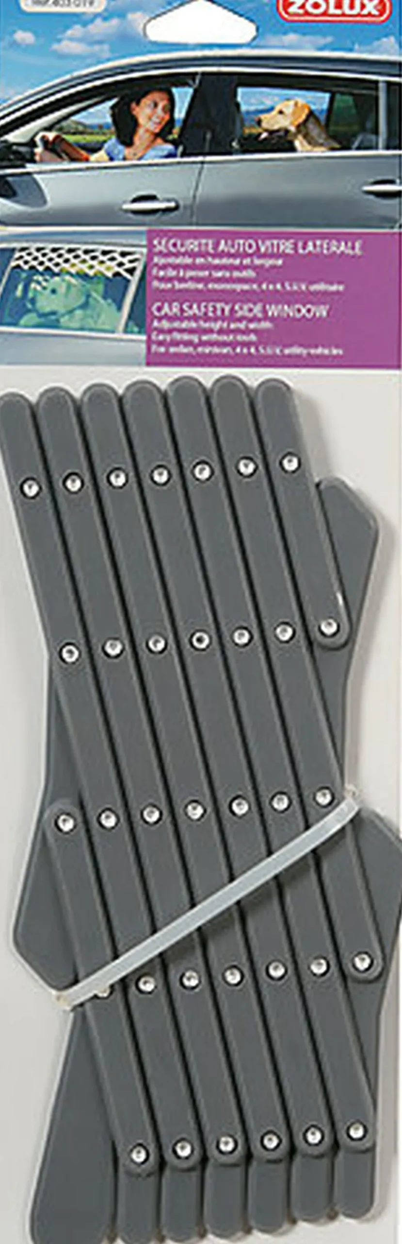 La sécurité auto vitre latérale se pose sur vitre baissée. Ce système de sécurité permet une aération de l’habitacle et empêche le chien de sortir la tête dehors pendant le trajet.